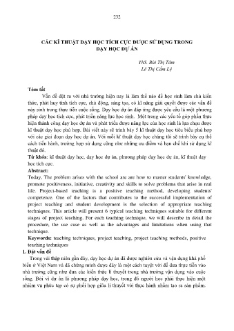 Từ khóa: kĩ thuật dạy học, dạy học dự án, phương pháp dạy học dự án, kĩ thuật dạy
